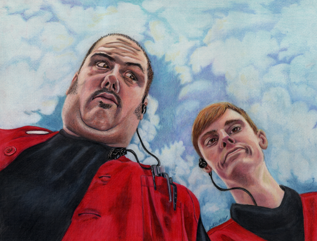 Do now I had to decide if I was going to do the ceiling of the store, or if since the title is outside the box, if I should place them outside and let the sky be their ceiling. I thought the second idea might be too tongue in cheek, but since I had planned to do a sort of comic book, realism cross kind of style, I figured I could get away with it. So on came the clouds. I have always been one to kind of avoid background because to me they are the hard part, but as I laid in the clouds, the faces became alive to me. I actually at one point teared up as I saw my son in the painting looking back at me. I am now a true believer in doing my backgrounds first. I hope you enjoy the final painting. And I hope you continue to think outside the box!