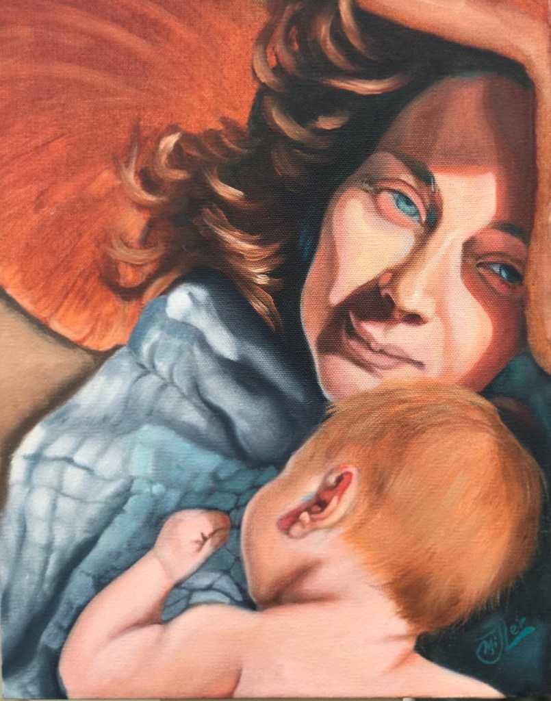 While I usually push my paintings into a realism with fine blending and detail, I wanted to leave this series blocky and un edited you might say. Raw, Real, yet Unfinished. These are the feelings I’m trying to portray. My use of bold color and contrast of cool and warm tones is to show the contrast in emotions that so comfortably sit side by side in a mothers struggle to care properly for her children. A sacrifice that is not always appreciated by the baby, toddler youth or teen. But she continues on doing her best anyway. No Matter What, because she loves her children more than life itself!